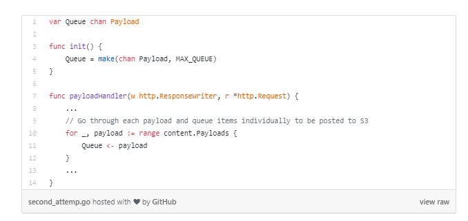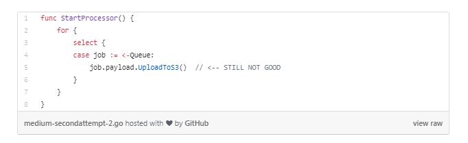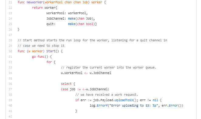 这个想法是以某种可持续的速度并行上传到S3,它既不会削弱机器性能,也不会从S3开始生成连接错误。所以我们选择了创建一个作业/作业者模式。对那些熟悉java,C#等语言的人来说,可以考虑采用Go语言实现通道方式而不是作业者线程池的方式。