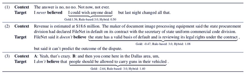 这篇是 ACL 2019 最佳短论文,论文说明了语言学规则(先验)对说话者承诺任务的重要影响,值得语言学或 NLP 研究背景的读者了解。