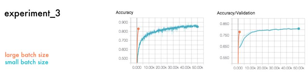 另一个重要参数是批量大小,在每一步训练中的数据量。下面是一组大批量数据与小批量数据的对比。