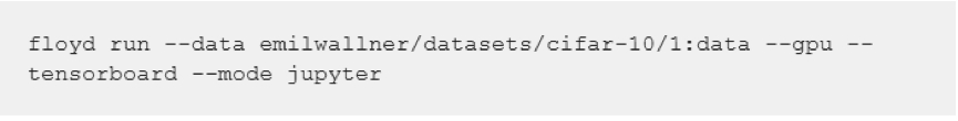o data emilwallner/datasets/cifar-10/1:data 指定数据目录。你可以在FloydHub上查看该数据集(以及许多其他公共数据集)。
