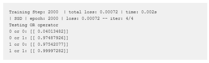我们将从实现一个简单的神经网络开始,以了解TFlearn中的语法。从经典的101问题开始,也就是OR运算符。虽然神经网络更适合于其他类型的数据,但这是了解其工作原理的一个很好的问题。