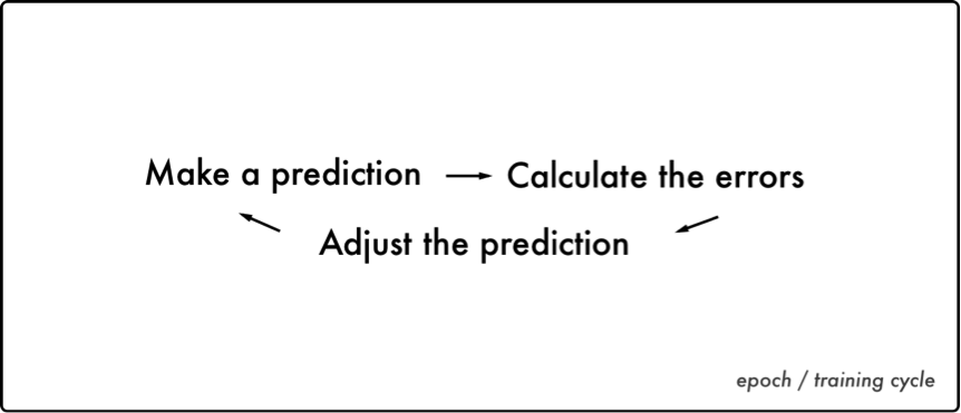 预测 – 计算误差 – 调整预测值 (训练周期)