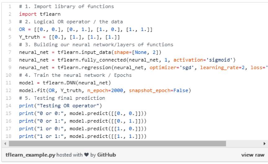 你可以在大多数TFlearn神经网络中找到上述逻辑和语法。学习这段代码最好的方法就是修改代码并产生一些错误。
