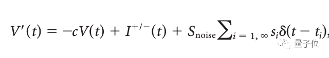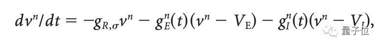 而通过下面这个LIF(leaky integrate-and-fire)方程,第n个神经元vn的膜电位会趋向标准化尖峰阈值Vth:
