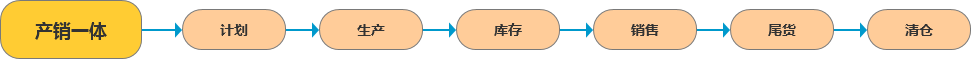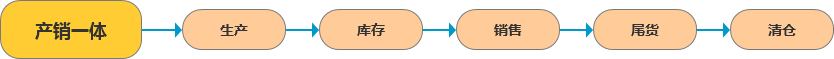 初始的是这种传统生产销售模式,产销一体,工厂生产出产品变成库存,业务员去跑业务销售产品,库存剩余后折价销售。