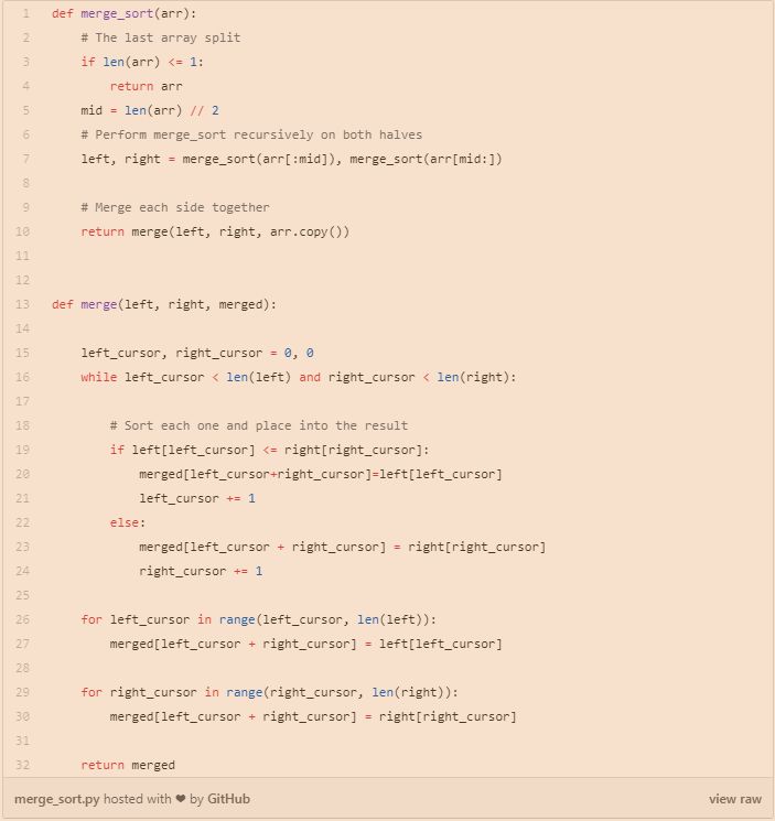 归并排序是分而治之算法的完美例子。它简单地使用了这种算法的两个主要步骤:
