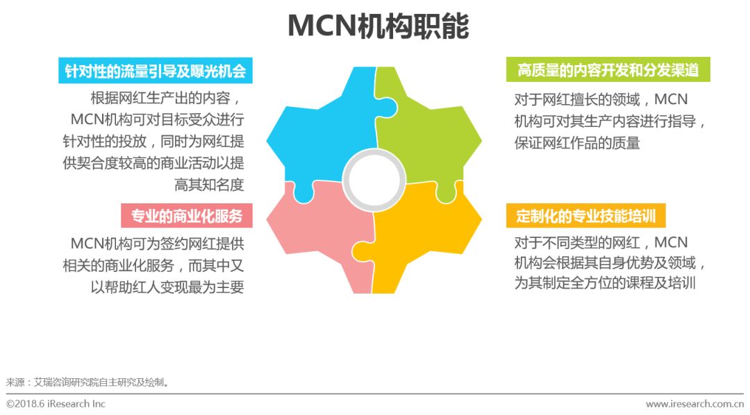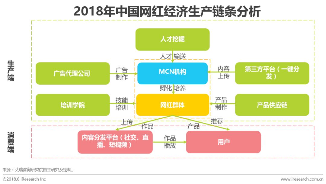 MCN(Multi-channelNetworks),意为多频道网络,原是依托于Youtube平台机制而创造出的商业模式。MCN与平台合作,为签约网红提供推广营销、流量变现等多种商业化服务,并按规则取得收入分成。MCN模式在被引入中国后,迅速发展壮大,成为网红经济中极为重要的一环,有力地促进了网红经济整体产业的发展。
