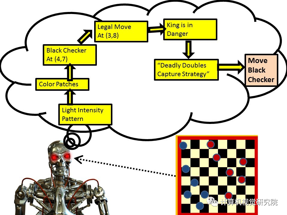 写一个程序去识别复杂场景中照明条件下新视角的三维物体是很困难的。我们不知道编写什么程序,因为我们并不了解它在我们大脑中运作的机制,即便知道如何实现,写出来的程序也可能会非常复杂。