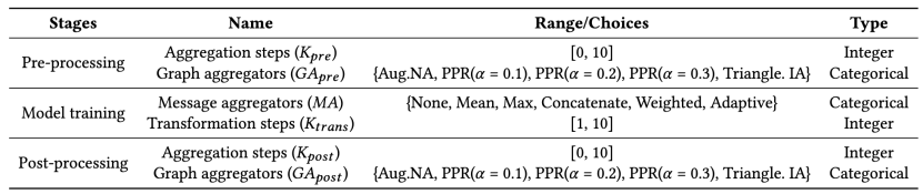 搜索引擎的主要目标是找到在 SGAP 建模范式下能同时兼容多个搜索目标的可扩展图神经网络结构。如表 1 所示,它首先定义了一个包含 15 万种不同网络结构的搜索空间,并基于贝叶斯优化来实现网络结构的推荐。在每次迭代中,推荐服务器会建模观测到的网络结构与优化目标值之间的关系,并推荐能最好地平衡多个优化目标的网络结构。最后,它基于验证引擎返回的观测结果来更新历史信息。