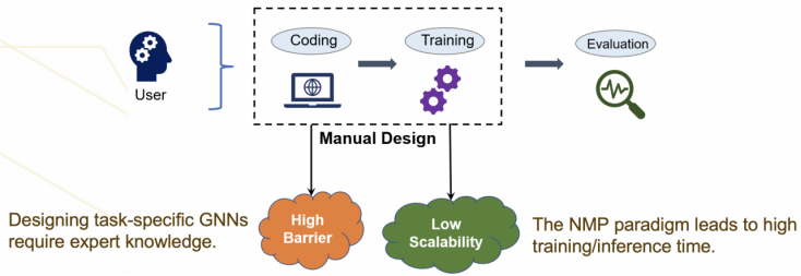 图神经网络模型在多个图任务上都取得了最佳效果,并受到了学术界和工业界的广泛关注。然而,大多数图神经网络模型可扩展性较低,很难直接用于现实生活中的大规模图数据。此外,设计针对特定图数据和图任务的神经网络结构也需要经验丰富的专家,建模成本很高。