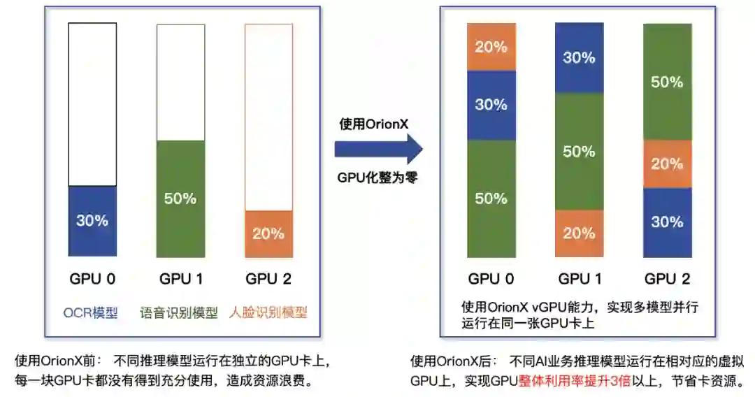 图2: OrionX在生产环境中的单卡多业务复用示例