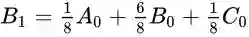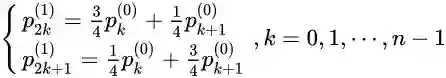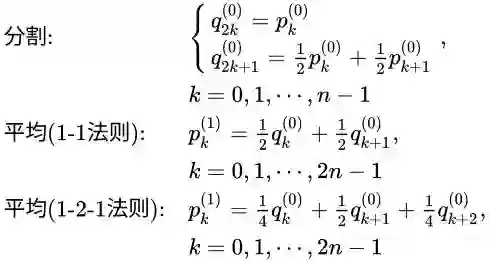 上述平均的操作被称为“1-1法则”,另外还有“1-2-1法则”,即调整了参与加权平均操作点的个数及权重,变为由所有两两相邻的3个点参与权重为1,2,1的加权平均.