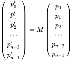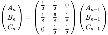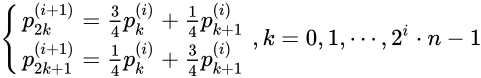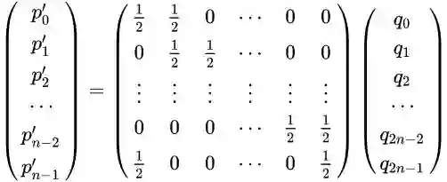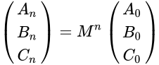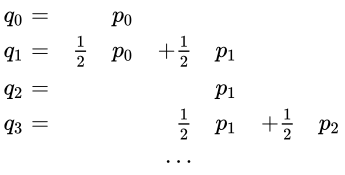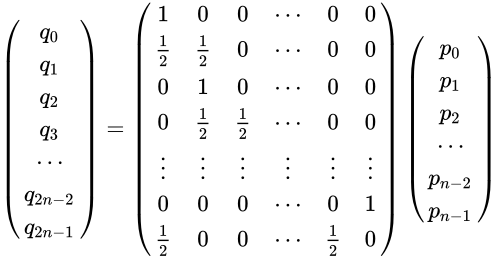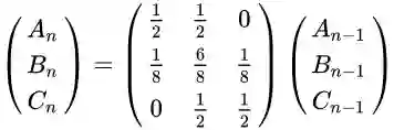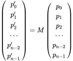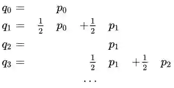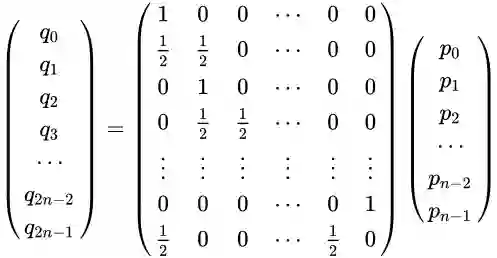 相信看过markov系列文章的读者,应该对类似递推数列与矩阵乘法的关系比较熟悉1,为了帮助还不太熟悉矩阵乘法的读者迅速发现其中的联系,我们列出一些分割操作中点列与点列