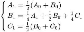 为了记号的简洁,我们把初始点列记作,经过一次平均后的点列记作