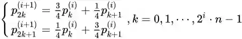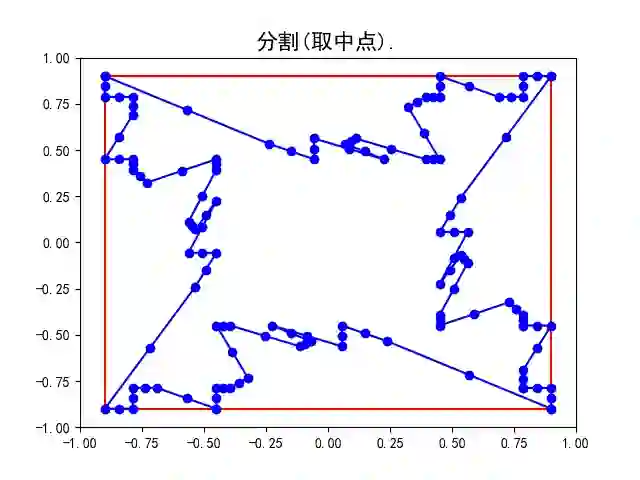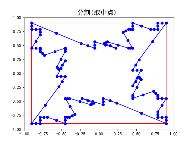 作出原曲线上各条线段的中点插入到原有的点列,即完成对原曲线的分割. 此时点列中点的个数变为原来的两倍.