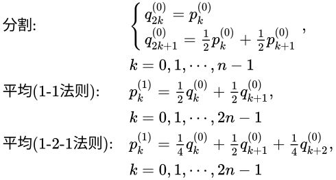 当曲线完成一次分割、平均操作,也被称为曲线完成了一次细分.