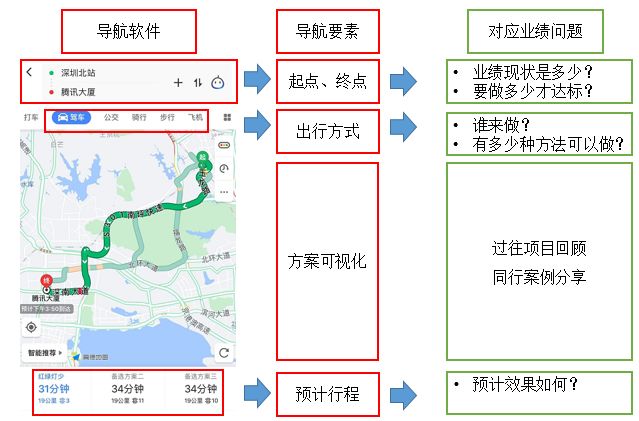 ,把可能的情况列出来。可这样做,能让业务部门决策起来非常轻松。这就像我们开导航,高德地图不会替我们选择起点终点,但是会很贴心的自动标出目前位置(现在)、保存去过的地点(目标)、选定起点终点后,提示有几条线路(怎么做),连路上堵不堵,预计多久到都有提示(预测目标达成率)。这样作为决策人看到信息非常清晰,自然容易做出策略判断了。