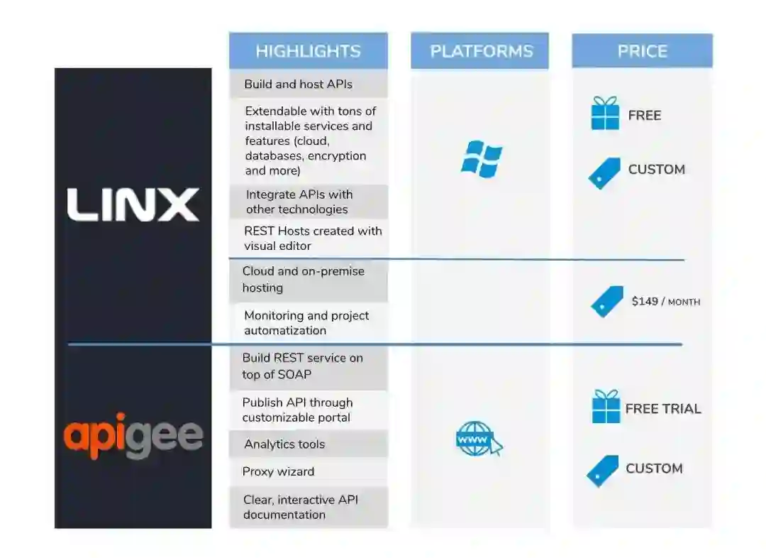 Linx 在创建或调用内部和外部 REST Web 服务方面特别强大。它是扩展需与其他技术集成的 API 的最快方法(例如,你需要将数据加载或推送到数据库中、建立紧密联系、推送更新以通知通知流、随时修改或加密数据等)。除了 REST 之外,Linx 还提供了从数据库到加密和云的多项功能,为 API 与多种技术的集成提供了无数种可能性。Linx IDE Designer 是执行测试和服务调用的绝佳免费选项。如果要监视和自动化测试套件,或在本地或云中计划调用,则需要升级到付费的 Linx Server。