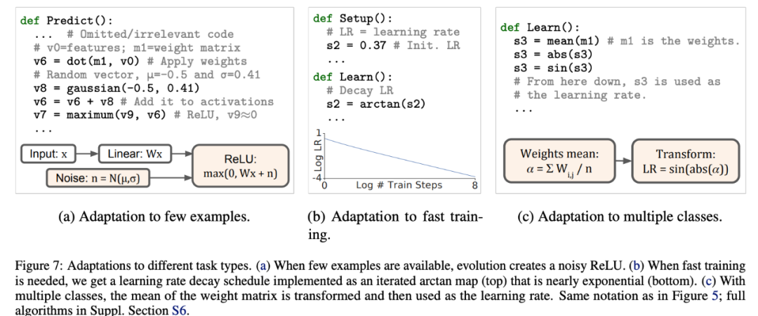 最开始进化搜索发现的是最简单的算法——具备硬编码权重的线性模型。经过一段时间后,随机梯度下降(SGD)被创造出来学习权重,尽管梯度本身还没有作为构造块。一开始 SGD 存在一些缺陷,但它很快就进行了迭代修复,并开始了对预测和学习算法的一系列改进。