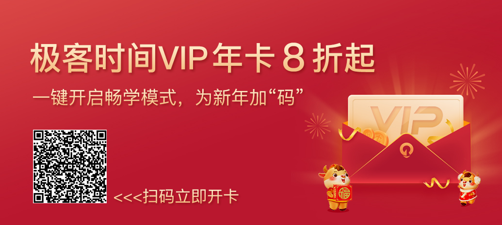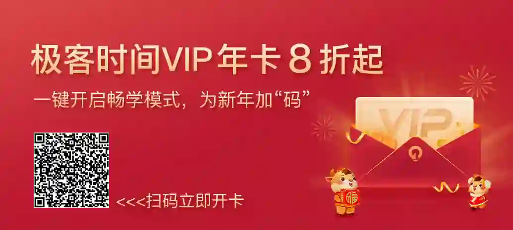 极客时间 VIP 年卡 8 折起,一键开启全年畅学模式,畅学架构、前端、后端、AI、移动、运维、云计算、技术管理等课程,为新年加“码”!