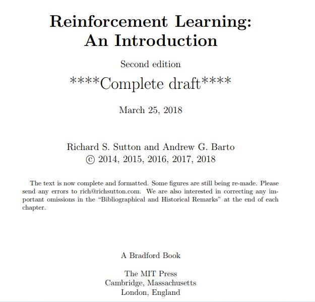 该书自2014年以来一直在不停的修订和完善,今年Sutton又分享了他最新版本的强化学习入门的最新版本,内容比去年的版本丰富了很多,页数增加到548页,非常值得阅读学习。附全书下载链接: