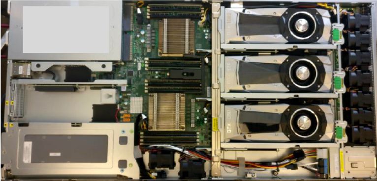 图 1:具备 4 张英伟达 GeForce GTX 1080 GPU、两个 8 核 CPU、128GB DDR 内存的 rbeGIR 服务器。