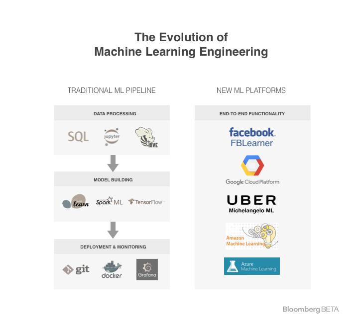 为了解决这些问题,有几家拥有足够资源开发定制工具的大公司,已经投入了时间和技术来制作自己的机器学习专用工具。他们的目标是开发端对端无缝机器学习平台,从而兼容他们自己的工程基础设施。