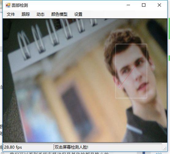 上图中,通过摄像头我们已经捕获到一张图像,接下来启用面部跟踪,看看会发生什么: