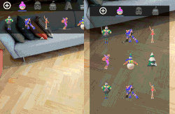 画廊 / 道具库:拥有很多道具可供选择是好事,但要尽量避免让用户在场景和屏幕之间来回切换,因为这可能会分散注意力并降低 AR 本身的沉浸感。试着减少屏幕上 UI 元素的数量,或将这些控件放置在场景中。