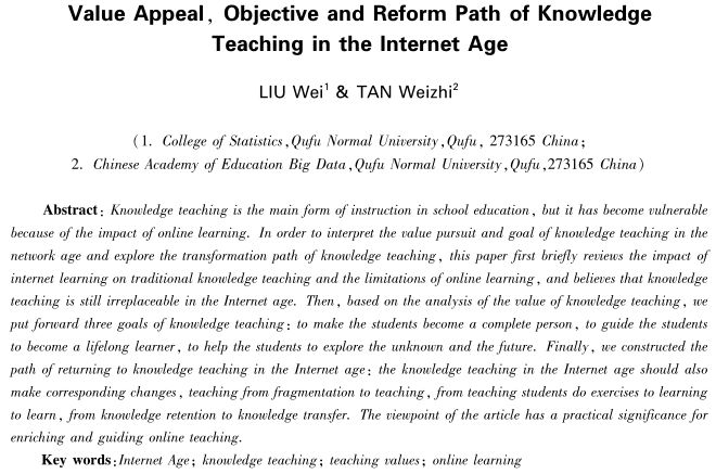 关键词:网络时代;知识教学;教学价值观;网络学习