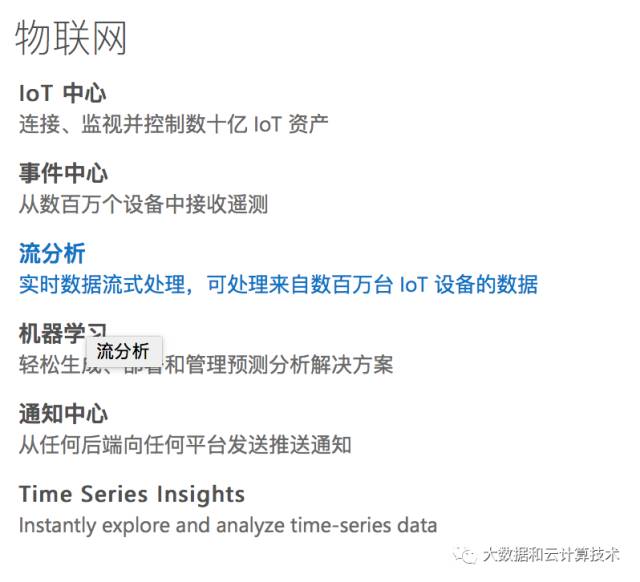 前面是一个抽象的体系结构,再来看下微软提供了那些具体服务,在Azure的物联网分类里面一共有下面6个服务: