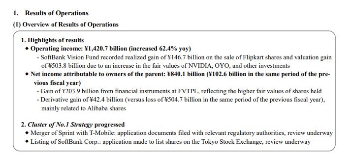 这其中归属于母公司股东的净利润约为 46.47 亿美元,相较去年同期的 8.58 亿美元,增长了 442% 。而根据 S&P Global Market Intelligence 的数据,分析师对软银的净利润预期也仅为 18.7 亿美元。