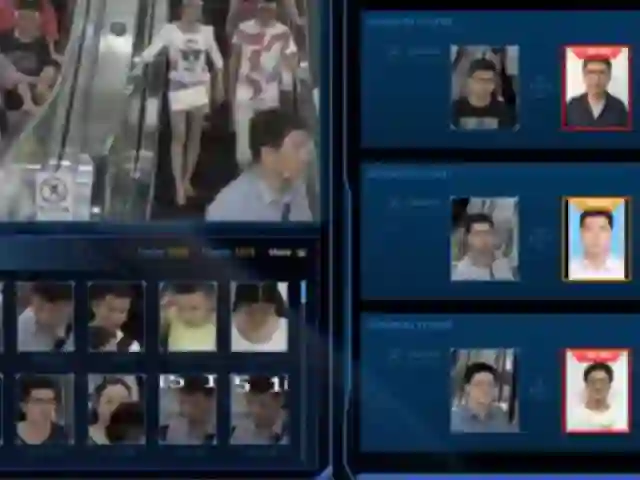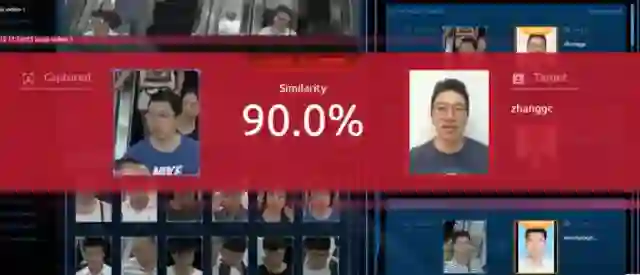 而在随后又爆料的视频中,该监控系统竟然还能对行人的面部特征自动进行识别,并可以通过监控系统与数据库实时进行比对,快速在视频画面中筛选和识别出与所找寻的目标匹配度最高的人。