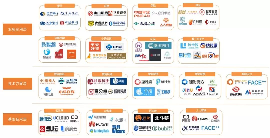 承上启下的作用,为金融行业提供应用技术方案,如智能营销、智能客服、智能风控、智能投顾、智能支付等。