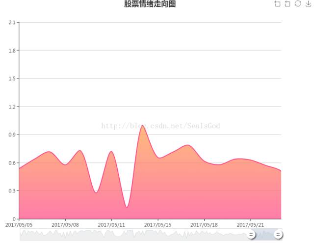 图1是我分析用户情绪画出的时间推进图,理论上小于0.5表消极情绪,大于0.5表示积极情绪。图2是实际股价的走势。