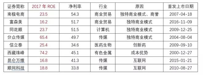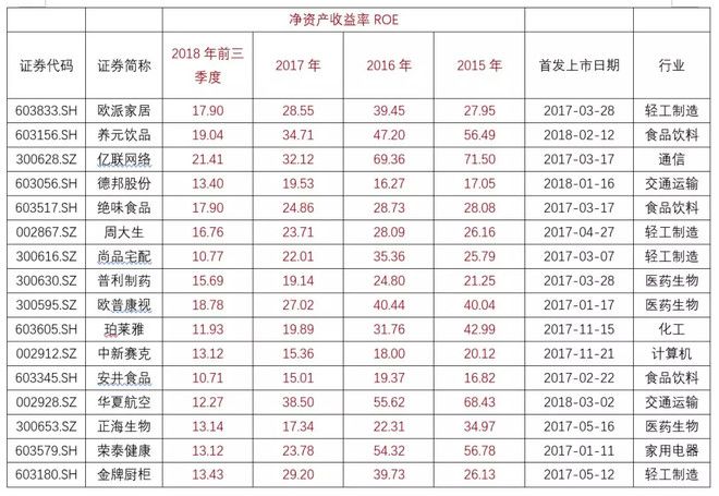 但是这些公司里一定会有非常优秀的公司走出来,比如下面这些上市两年内的高ROE公司,值得各位去仔细品鉴。