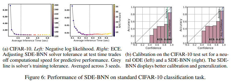 图 6a 展示了 SDE-BNN 的性能,图 6b 显示具有相似准确率但比神经 ODE 校准更好的结果。