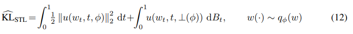 该研究使用 STL(sticking the landing) 估计器来替换 path 空间 KL 中的原始估计器以适应 SDE 设置: