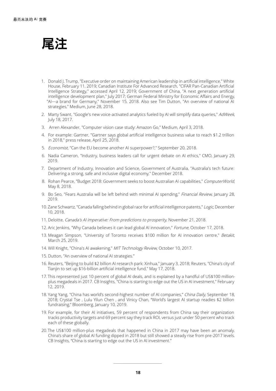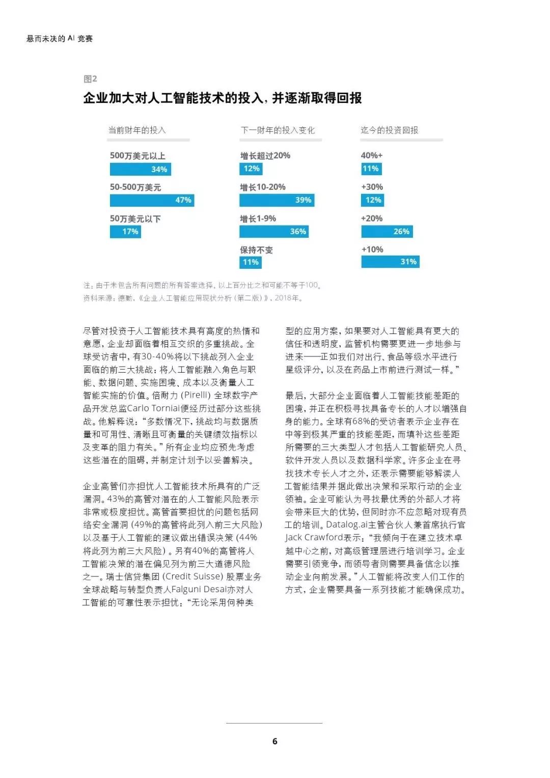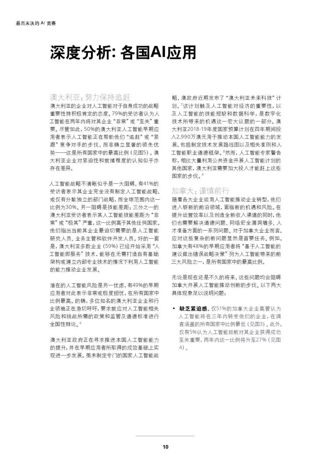 《悬而未决的AI竞赛——全球企业人工智能发展现状》由德勤洞察发布,德勤中国科技、传媒和电信行业编译。为了解全球范围内的企业在应用人工智能技术方面的情况以及所取得的成效,德勤于2018年第三季度针对早期人工智能应用企业的1900名信息技术及业务线高管开展了调查,范围涵盖七个国家:澳大利亚、加拿大、中国、德国、法国、英国以及美国。该调查重点关注了全球人工智能发展动态,以全球视角解读早期应用者,希望帮助所有企业制定更明智、更均衡的策略实现人工智能领域的独特优势。我们在深度探索七个国家的早期应用者后,发现:
