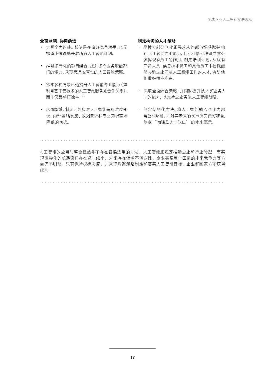 企业对人工智能重要性的认识逐步加深,包括增强竞争优势和改进工作方式。全球大部分早期应用者表示,人工智能技术对企业在当今时代取得成功尤为重要——这一观念正在逐步增长。亦有大部分早期应用者表示正在采用人工智能技术赶超竞争对手,同时人工智能赋予了其员工更加强大的能力。