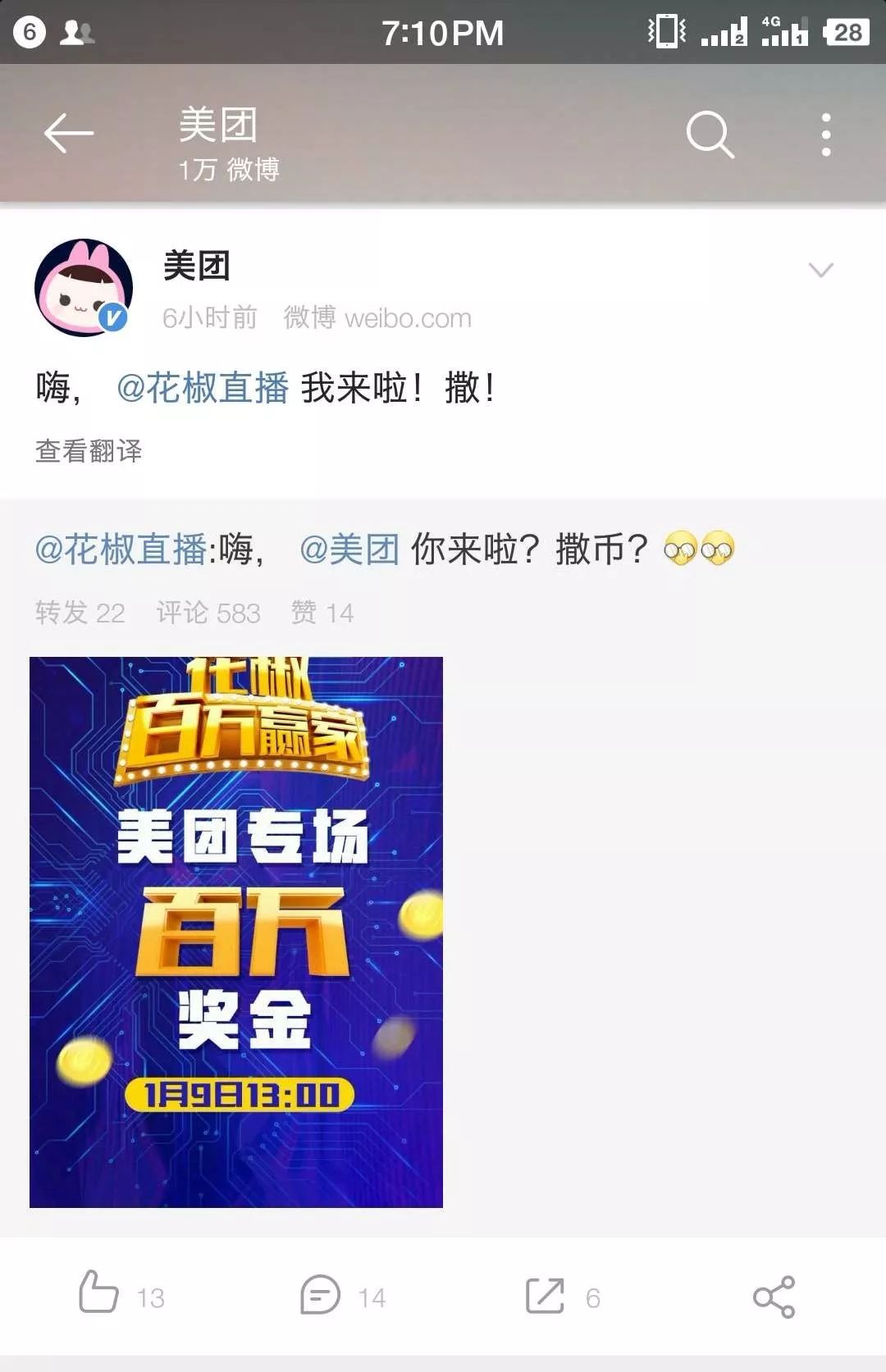 昨日下午花椒“百万赢家”公布开设美团专场,花椒与美团还通过官方微博互相调侃。距离爆火不足一周,这场疯狂游戏背后的商业逻辑已昭然若揭。