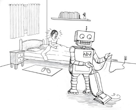 那么此时机器人就必须理解背后的因果关系:吸尘器制造噪音,噪音吵醒人,而这会使你不高兴。