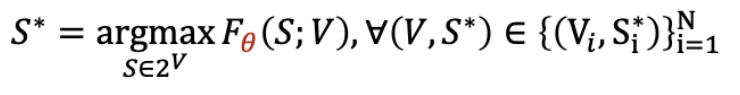 很多现实应用场景与集合密切相关,例如推荐系统、异常检测和分子筛选等。这些应用都潜在地学习了一个集合函数来评价给定集合的得分,使得输出的集合拥有最高得分。以商品推荐为例子(如下图所示),我们希望从某个网店的商品库V中推荐子集,使得用户对该商品子集拥有最高评分