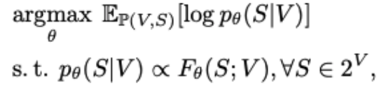 其中我们通过的正比约束使得最终学习到的集合函数满足上文的要求。进一步地,我们希望该概率分布及由此推导的训练方法满足若干的性质,如:置换不变性、最小先验假设和可扩展性(scalability)等。
