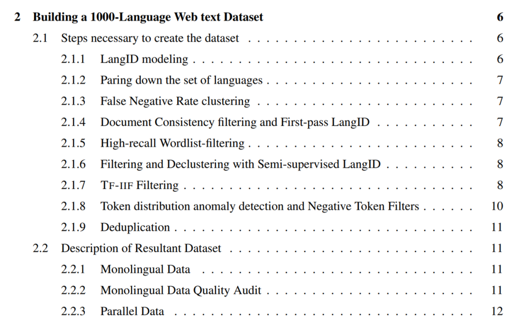 第一,通过用于语言识别的半监督预训练以及数据驱动的过滤技术,为 1500 + 语言创建了干净、web 挖掘的数据集。