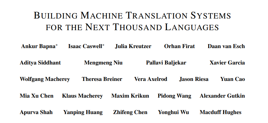 在近日谷歌一篇论文《Building Machine Translation Systems for the Next Thousand Languages》中,二十几位研究者展示了他们努力构建支持超过 1000 种语言的实用机器翻译系统的成果。