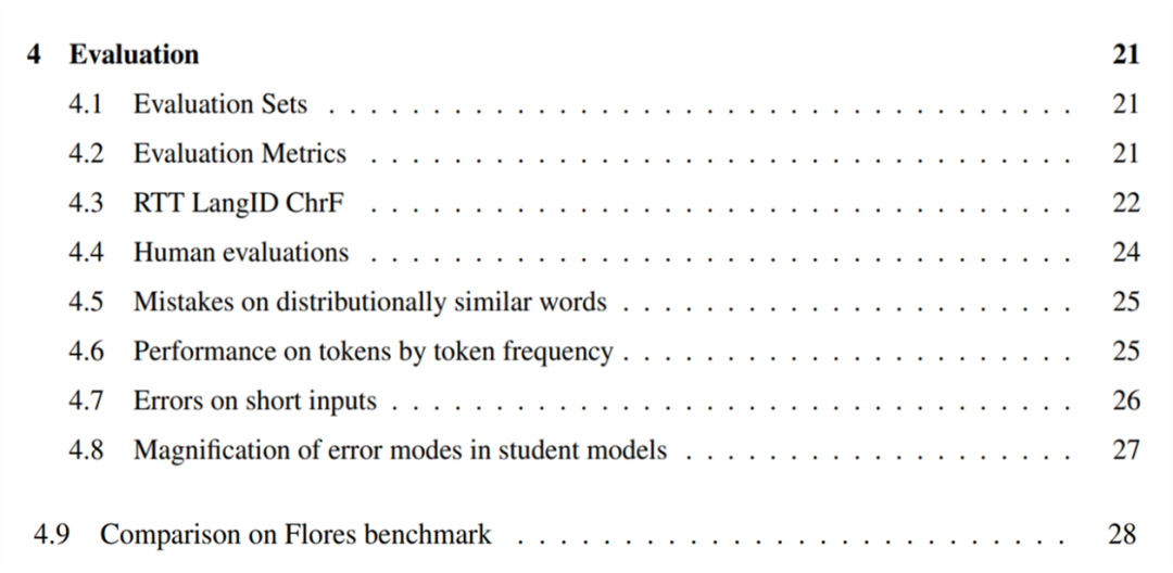 研究者还提出了一个近似的、基于往返(round-trip)翻译的无参考指标,用来了解模型在参考集不可用的语言上的质量,并报告了以该指标衡量的模型的质量(4.3)。他们对模型在 28 种语言的子集上进行人工评估并报告了结果,确认可以按照文中描述的方法构建有用的机器翻译系统(4.4)。