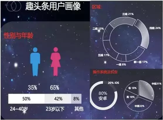 谭思亮曾为趣头条绘制过用户画像:三线以下城市的用户居多,女性占到近7成,40岁以上的用户占到35%,有闲时,乐于分享,不擅长用互联网。