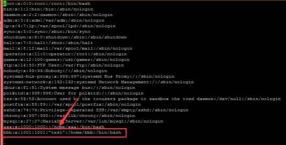 然后再通过vi /etc/passwd来查看是否对bbb这个用户成功注释