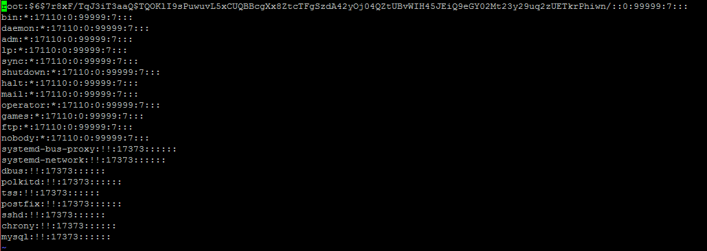这里面存放着linux系统里所有的用户信息,每当添加完用户后,这里面都会写入相应的数据,相当于windows的用户管理界面,拿第一行数据举例: